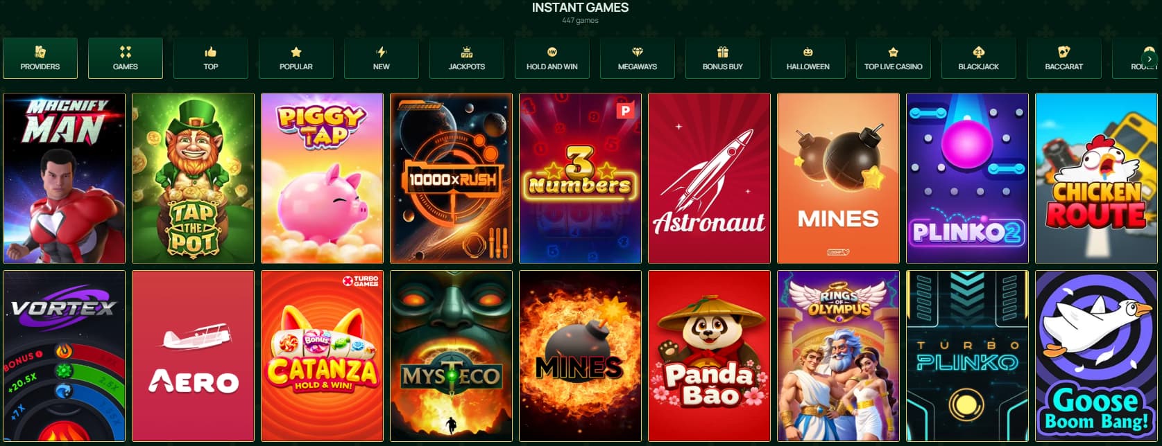 Número de juegos | Miles de títulos (slots, jackpots, vivo, crash) |